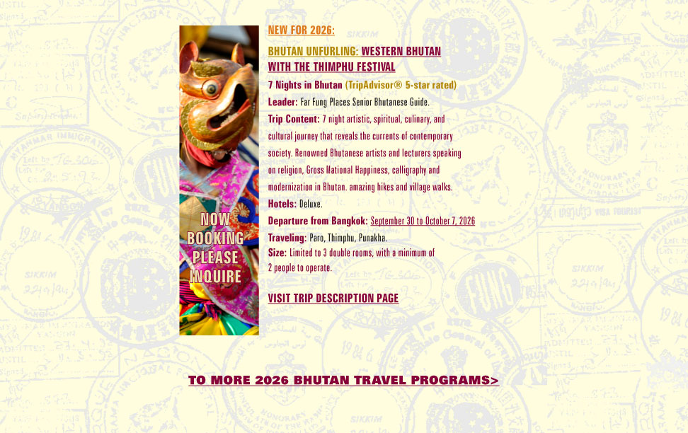 Bhutan Bhutan Bhutan Bhutan, Indian Himalaya Bhutan, Indian Himalaya Tibet, Nepal, Bhutan Bhutan, assam Bhutan, Assam Bhutan Travel Bhutan Travel 2009 Happy New Year Far Fung Places Unique Company Features International Travel Travel Bhutan Bhutan Links/Handmade Travel Bhutan Pre/Post/Custom Trips Bhutan Treks Thimphu Festival Thimphu Festival Jambay Lhakhang Indian Himalaya, Bhutan Indian Himalaya, Bhutan Tibet, Nepal, Bhutan Bhutan, Assam Bhutan, Assam Bhutan Travel 2009 Contact Us Ura Festival Wangdi Festival Thimphu Festival Jambay Lhakhang Jewels of the Himalayas Jewels of the Himalayas Tibet, Nepal, Bhutan Mongar & Trashigang Festival Contact Us Happy New Year Wangdi Festival Thimphu Festival Jambay Lhakhang India, Bhutan Jambay Lhakhang Tibet, Nepal, Bhutan Jakar Festival Mongar & Trashigang Festivals Bhutan Travel Spring 2009 Contact Us Happy New Year Wangdi Festival Thimphu Festival Jambay Lhakhang Drup India Himalaya. Bhutan Bhutan Only China, Tibet, Nepal, Bhutan Bhutan Jakar Festival Mongar/Trashigang Festivals Bhutan Spring 2009 Happy New Year Wnagdi Festival Thimphu Festival Jambay Lhakhang & Prakhar Festivals Indian Himalaya, Bhutan Bhutan Only China, Tibet, Nepal, Bhutan Bhutan Only Jakar Festival Mongar & Trashigang Festivals Bhutan Spring 2009 Bhutan Spring 2009 Mongar and Trashigang Festivals Jakar Festival China, Tibet, Nepal, Bhutan Bhutan Only Bhutan Only Nepal, Indian Himalaya, Bhutan Jambay Lhakhang Drup Thimphu Festival Wangdi Festival Happy New Year Happy New Year Wangdi Festival Thimphu Festival Jambay Lhakhang Festival Nepal, Indian Himalaya, Bhutan Bhutan Only China, Tibet, Nepal, Bhutan Bhutan Only Jakar Festival Mongar and Trashigang Festivals Bhutan Spring 2009 Happy New Year Wangdi Festival Thimphu Festival Jambay Lhakhang Festival Jambay Lhakhang Festival Bhutan Only Jambay Lhakhang Festival Bhutan Only Jakar Festival Mongar & Trashigang Festivals Bhutan Spring 2009 Bhutan Spring 2009 Mongar & trashigang Festival Jakar Festival Tibet, Nepal, Bhutan Bhutan Only Nepal, India, Bhutan Wangdi Festival Thimphu Festival Jambay Festival Bhutan Only Happy New Year Happy New Year Wangdi Festival Thimphu Festival Jambay Lhakhang Festival Bhutan Only Tibet, Nepal, Bhutan Bhutan Only Jakar Festival Mongar & Trashigang Festivals bhutan Spring 2009 Happy New Year Wangdi Festival Thimphu Festival India Himalaya, Bhutan Bhutan Only Tibet, Nepal, Bhutan Bhutan Only Jakar Festival Mongar & Trashigang Festivals Bhutan Spring 2009 Bhutan Spring 2009 Mongar & Trashigang Festivals Jakar Festival Bhutan Only Tibet, Nepal, Bhutan Bhutan Only Bhutan Only Thimphu Festival Thimphu Festival Happy New Year Happy New Year Wangdi Festival Thimphu Featival Jambay Lhakhang Bhutan Only Jakar Festival Mongar Festival Bhutan Spring Departures 2009 Happy New Year Wangdi & Thimphu Festivals Tibet, Nepal, Bhutan Bhutan Only Bhutan, Assam Bhutan, Assam Bhutan Spring 2009 Bhutan Spring 2009 Mongar/Trashigang Festival Jakar Festival Bhutan Only Tibet, Nepal, Bhutan Happy New Year Tibet, Nepal, Bhutan Bhutan only Jakar Festival Mongar & Trashigang Festivals Spring Bhutan 2009 Tibet, Nepal, Bhutan Bhutan Only Jakar Festival Mongar & Trashigang Festivals Bhutan Spring 2009 Punakha Festival Paro Festival Paro Festival Ura Festival Tibet, Nepal, Bhutan Burma Burma, Bhutan Bhutan Fall 2009 Happy New Year Punakha Festival Paro Festival Paro Festival Ura Festival Tibet, Nepal, Bhutan Burma Pre-Tour Bhutan, Burma Bhutan Fall 2009 Happy New Year Punakha Dromchoe Paro Festival Paro Festival Ura Festival Bhutan Fall 2009 Happy New Year Punakha Dromchoe Paro Festival Paro Festival Ura Festival Bhutan Travel Happy New Year Paro Festival Paro Festival Ura  Festival Bhutan Travel Contact Us Happy New Year Ura Festival Travel Bhutan Contact Far Fung Places Happy New Year Thimphu Festival Thimphu & Wangdi Festivals Thimphu & Tangbi Festivals Jambay & Prakhar Festivals Pushkar Fair Bhutan, Nepal, Tibet Burma Bhutan, Buram Bhutan Travel Contact Us Contact Us Bhutan Travel 2009 Bhutan, Burma Burma Bhutan, Nepal, Tibet Pushkar Fair Jambay Lhakhang Festivals Thimphu Festivals Thimphu & Wangdi Festivals Thimphu Drupchen (Blessing) Happy New Year Thimphu Blessing Ceremony Happy New Year Thimphu & Wangdi Festival Thimphu & Tangbi Festivals Jambay Lhakhang Festival Pushkar Camel Fair Bhutan, Nepal, Tibet Burma Bhutan, Burma Bhutan Travel Fall 2009 Happy New Year Thimphu Blessing Wangdi Festival Thimphu & Tangbi Festivals Jambay Festival Pushkar Fair Bhutan, Nepal, Tibet Burma Bhutan, Burma Bhutan Travel Bhutan Travel Bhutan & Burma Burma Bhutan, Nepal, Tibet Pushkar Fair, India Jambay Festival Thimphu & Tangbi Festivals Thiinphu Festival Thiinphu Festival Happy New Year Happy New Year Thimphu Festival Jambay Lhakhang Pushkar Fair Bhutan, Nepal, Tibet Burma Bhutan, Burma Bhutan Travel Jambay Festival Bhutan, Nepal, Tibet Bhutan Fall 2009 Happy New Year Jambay, Prakhar Festivals Bhutan Travel Happy New Year Happy New Year Jambay Lhakhang Bhutan Travel Contact Far Fung Places Gom Kora Festival Taj Mahal, Agra Taj Mahal, Agra Happy New Year Travel Bhutan Contact Far Fung Places Contact Far Fung Places Gom Kora Festival Travel Bhutan Happy New Year Happy New Year Ura Festival Bhutan Travel Thimphu Blessing Ceremony Wangdi Festival Thimphu Festival Jambay Lhakhang Festival Happy New Year Darjeeling, Sikkim. Kalimpong Bhutan Travel Happy New Year Thimphu Drupchen Thimphu Drupchen, Wangdi Festival Thimphu Festival Jambay Lhakhang Festival West Bengal Hills Travel Bhutan Bhutan Travel Bhutan Travel Bhutan Travel Bhutan Travel India Travel Bhutan Travel Happy New Year Contact Far Fung Places Are US companies mere middlemen? Happy New Year Bhutan Travel Bhutan Travel Bhutan Travel Bhutan Travel Darjeeling, Sikkim, Kalimpong, West Bengal, India Far Fung Places Bhutan Travel Programs Contact Far Fung Places Contact Far Fung Places Far Fung Places Company Services International Travel Programs Bhutan Travel Programs Bhutan and Far Fung 